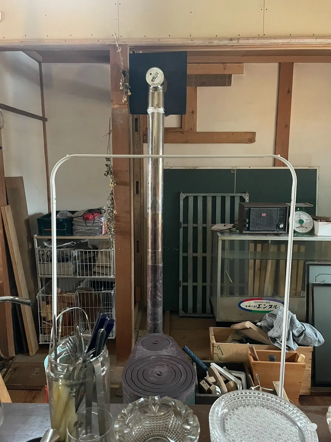元々はペチカ清掃のお話でお問い合わせを頂いたのですが、古道具屋としての一面も持っているお部屋で鉄板式の薪ストーブを使用されていました。